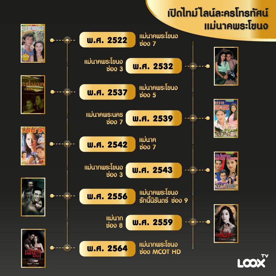 ย้อนกลับไปกว่า 40 ปีที่ผ่านมา แม่นาคพระโขนงได้รับการถ่ายทอดเป็นละครทางโทรทัศน์ไม่รวมภาพยนตร์ ละครเวที ละครวิทยุ นับแล้วได้ 9 เวอร์ชั่นด้วยกัน แต่ละเวอร์ชันก็มีพระเอก นางเอก แตกต่างกัน เนื้อเรื่องบางช่วงตอนอาจต่างกันไป แต่ตัวโครงเรื่องหลักใหญ่ก็ยังไม่ต่างกัน