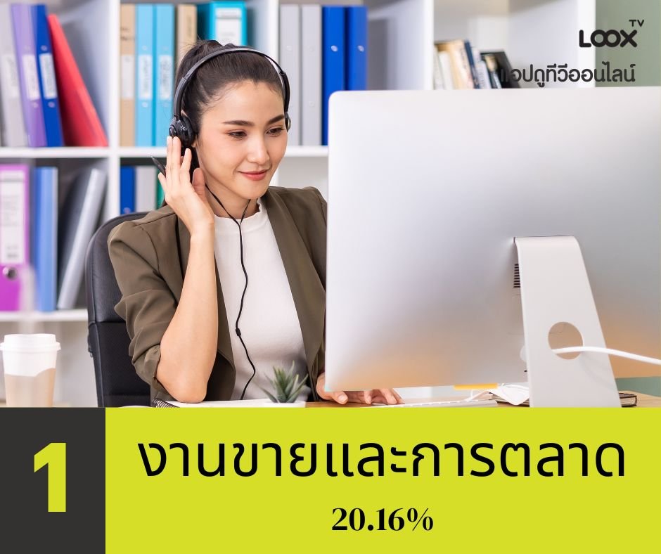 เช่น พนักงานขายหน้าร้าน, พนักงานขายออนไลน์, เจ้าหน้าที่ให้บริการด้านข้อมูลสินค้า,งานขายประกัน และ พนักงานขายทางโทรศัพท์