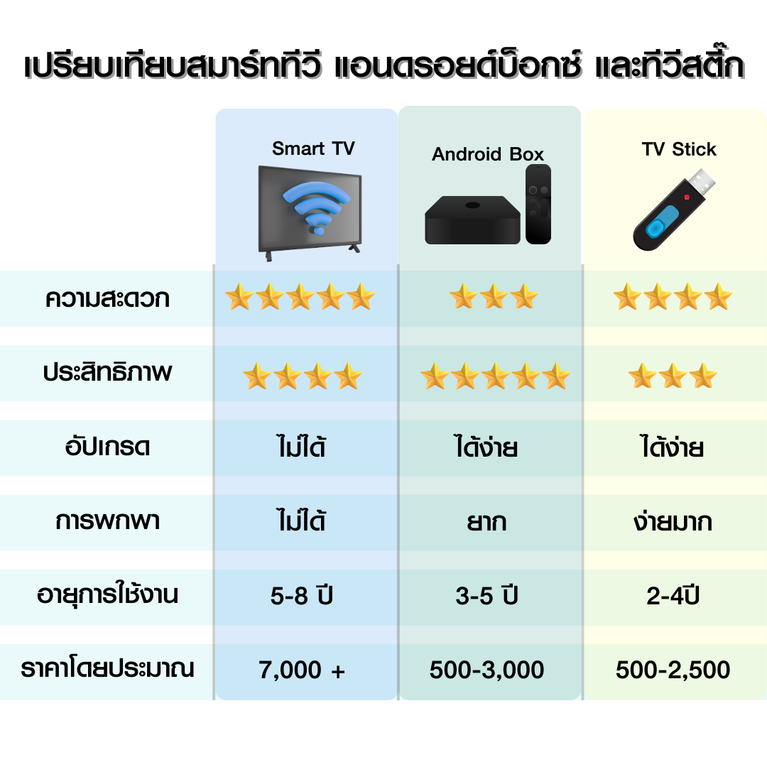 หรือเลือกแค่ Android Box หรือลองใช้แค่ของถูกลงมาอย่างพวกกลุ่ม TV Stick ให้กับทีวีเก่าก็พอ