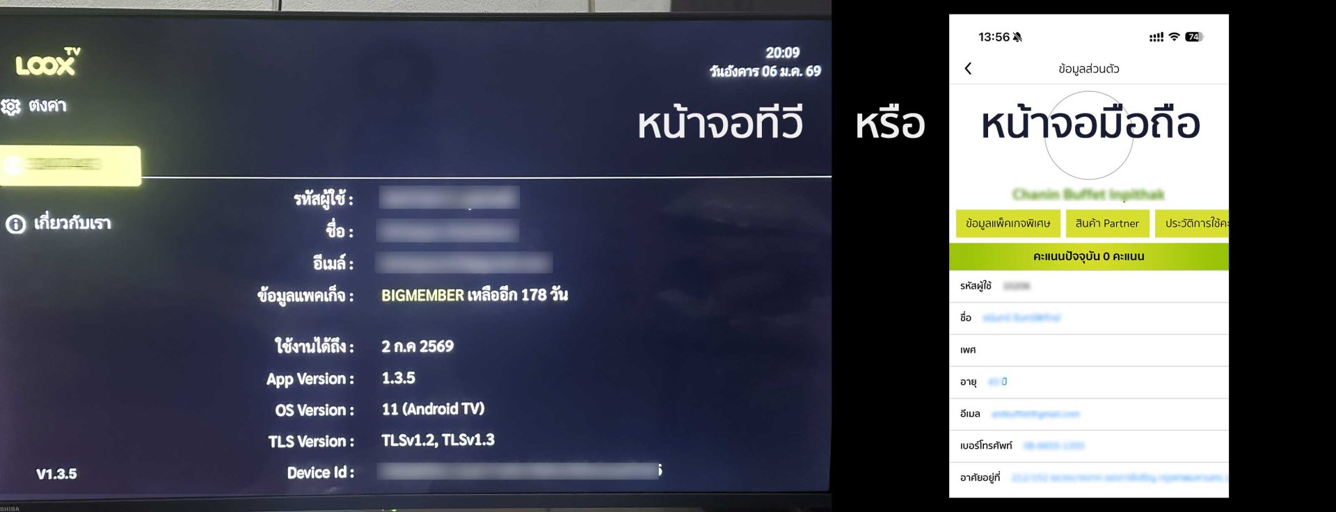 ลูกค้ายังสามารถติดต่อผ่าน Facebook: LOOX TV / Line: @looxtv / Email: looxtv.thaiai.co.th ได้